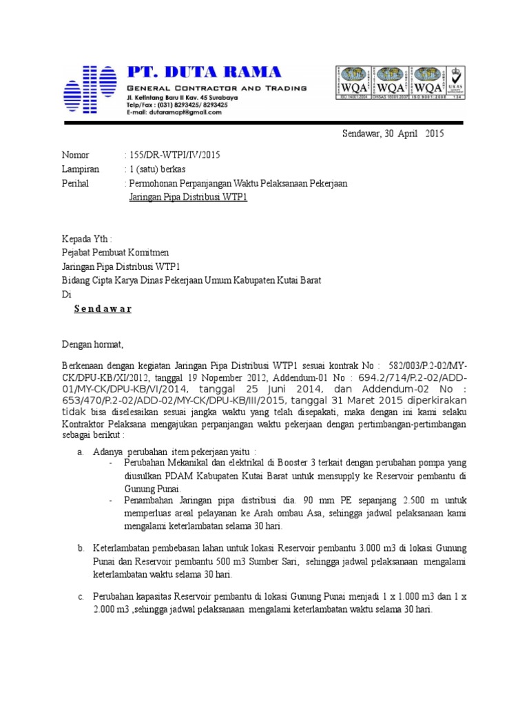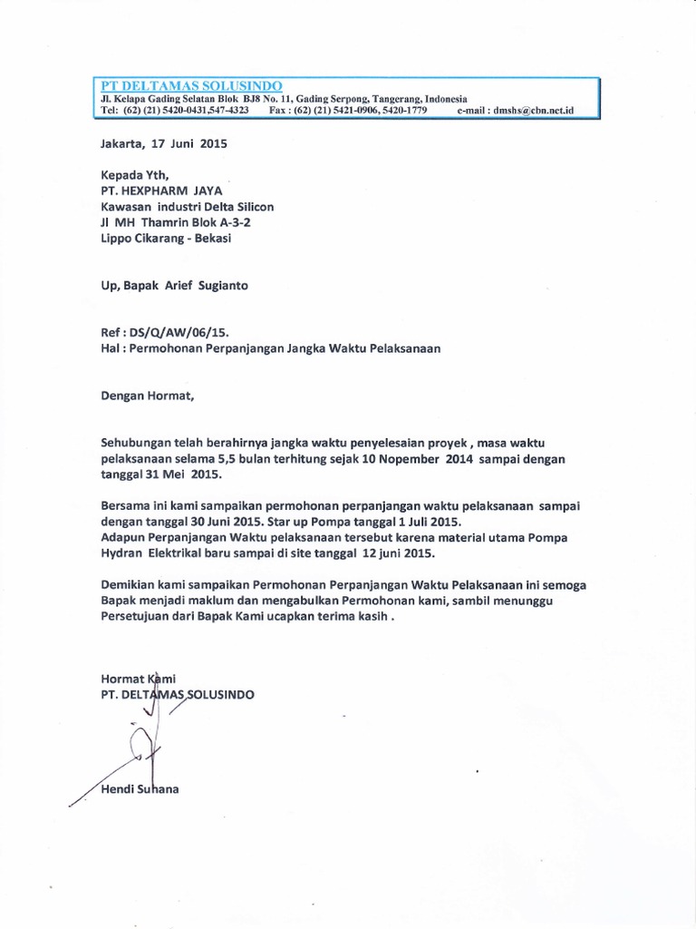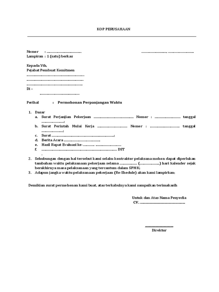 Surat Permohonan Perpanjangan Waktu Dri Cv Pdf