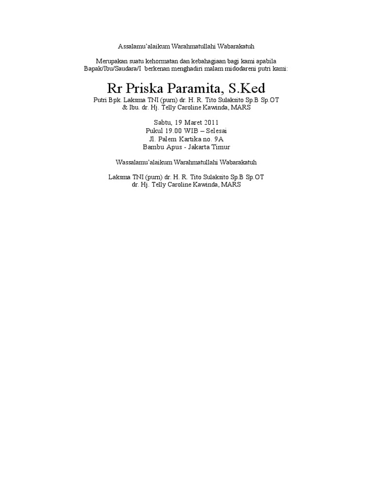 Contoh pidato untuk sambutan resepsi sebagai wakil kedua mempelai keponakan bismillahirrahmaanirrahiim bapak ibu sesepuh ninik mamak cerdik pandai para undangan dari kedua keluarga besar mempelai yang sangat kami muliakan Ibadat midodareni cara katolik syohanesberchmansBlogspot. Contoh undangan midodareni katolik. Untuk jumlah selain itu bisa ditanyakan ke admin 2.